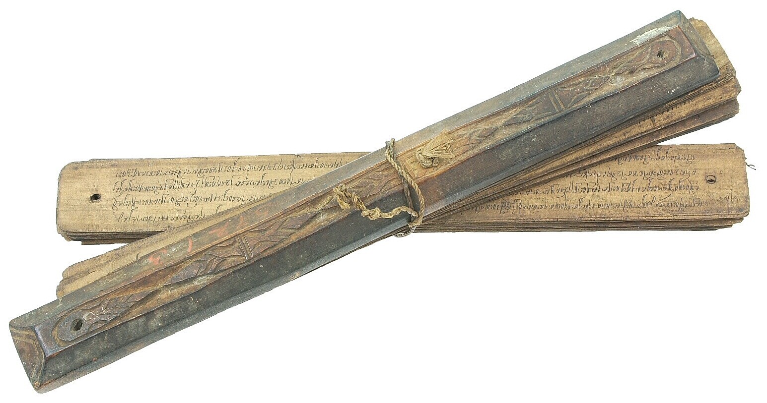 Kapmes in houten schede, voorzien van twee gevlochte...