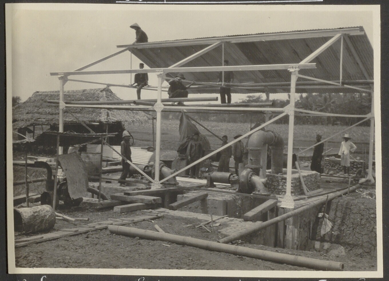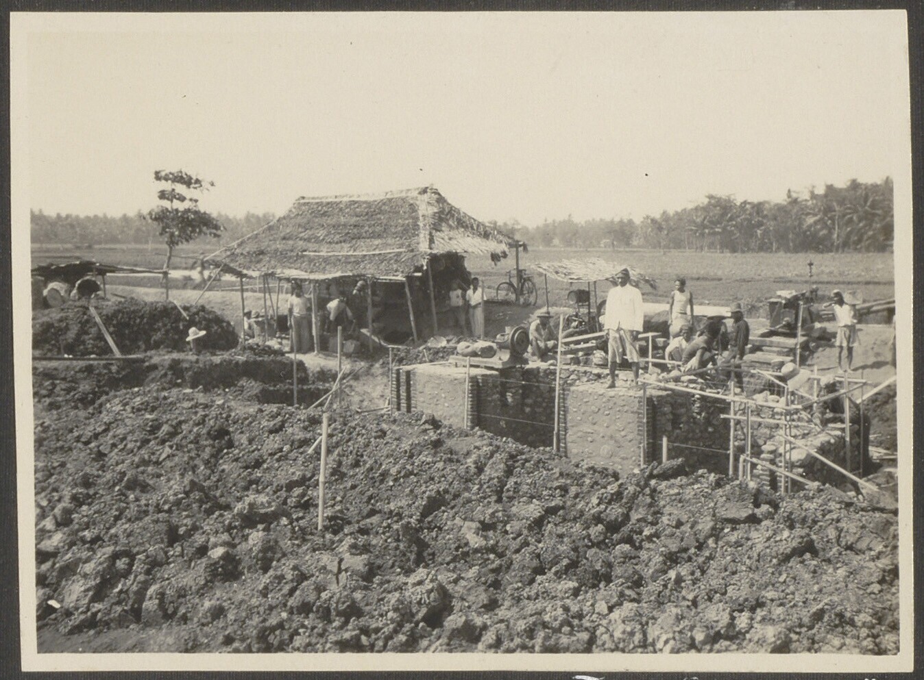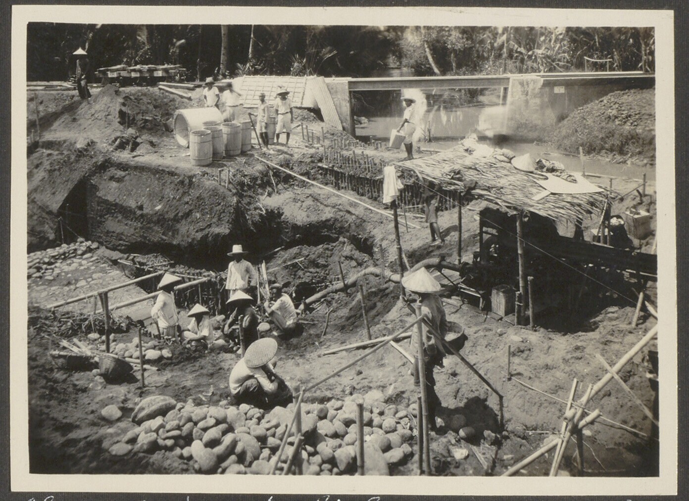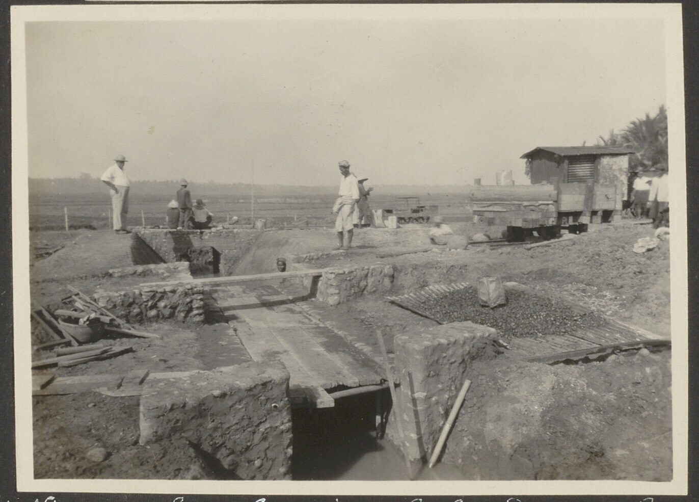 Bouwwerkzaamheden aan irrigatiewerk van suikerondern...