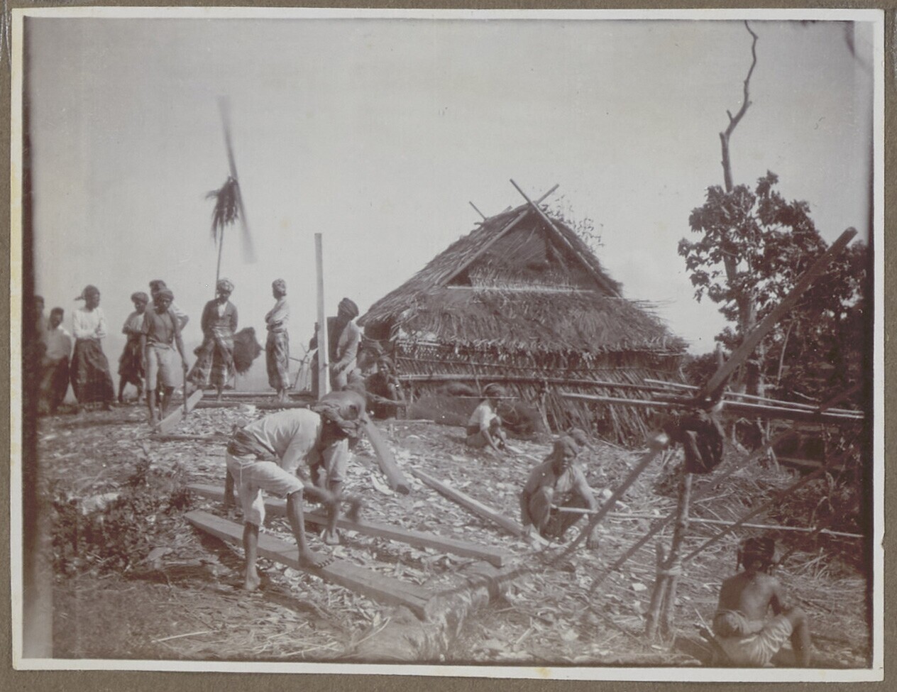 Ambachtslui verwerken de plantenvezels tot een gesch...