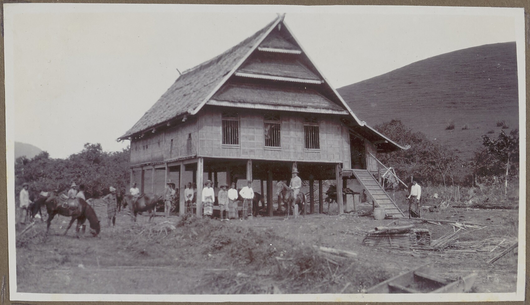 Uitzicht op een nieuw gebouwde paalwoning in de vallei