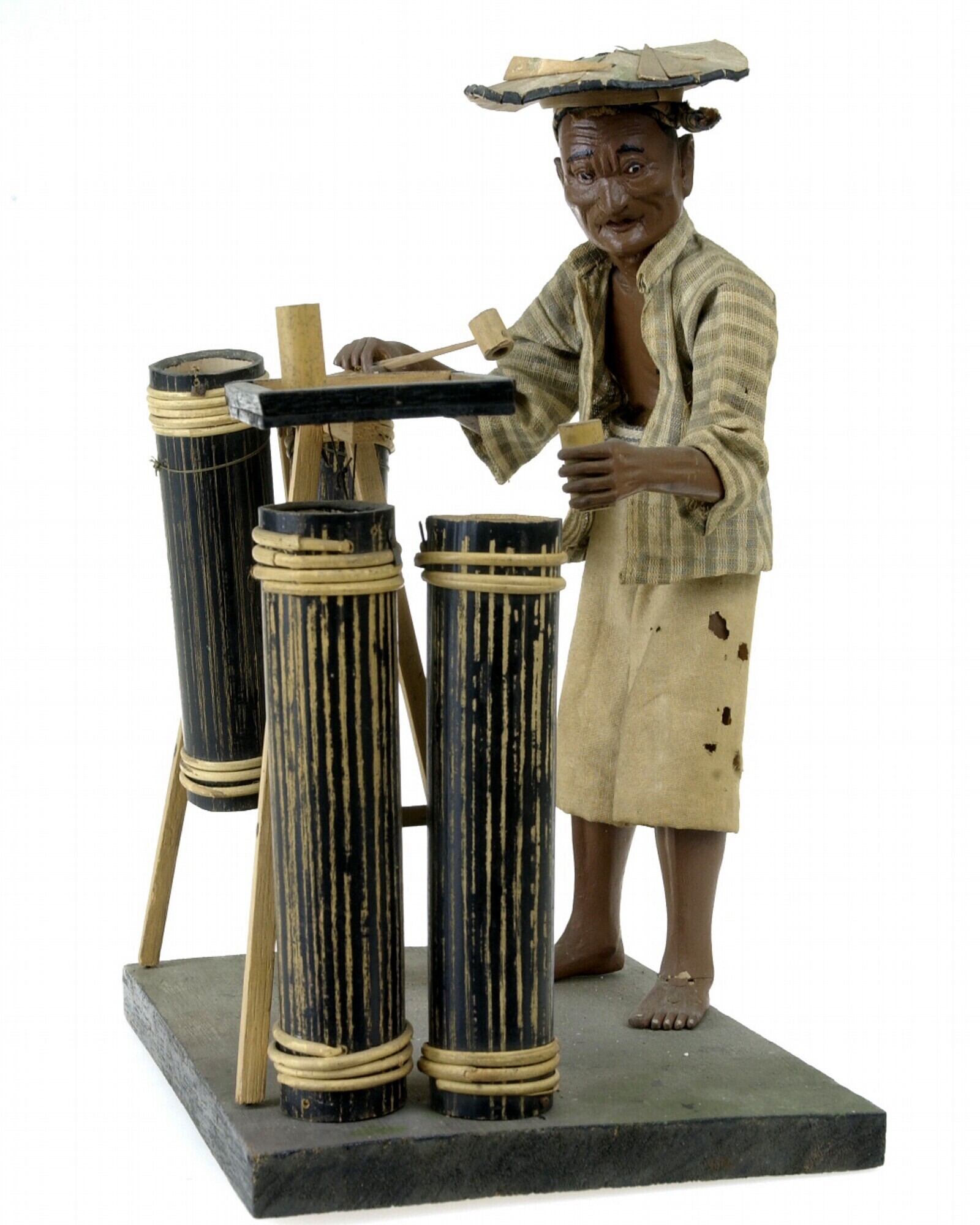 Model van een kroepoekverkoper met snaarinstrument e...
