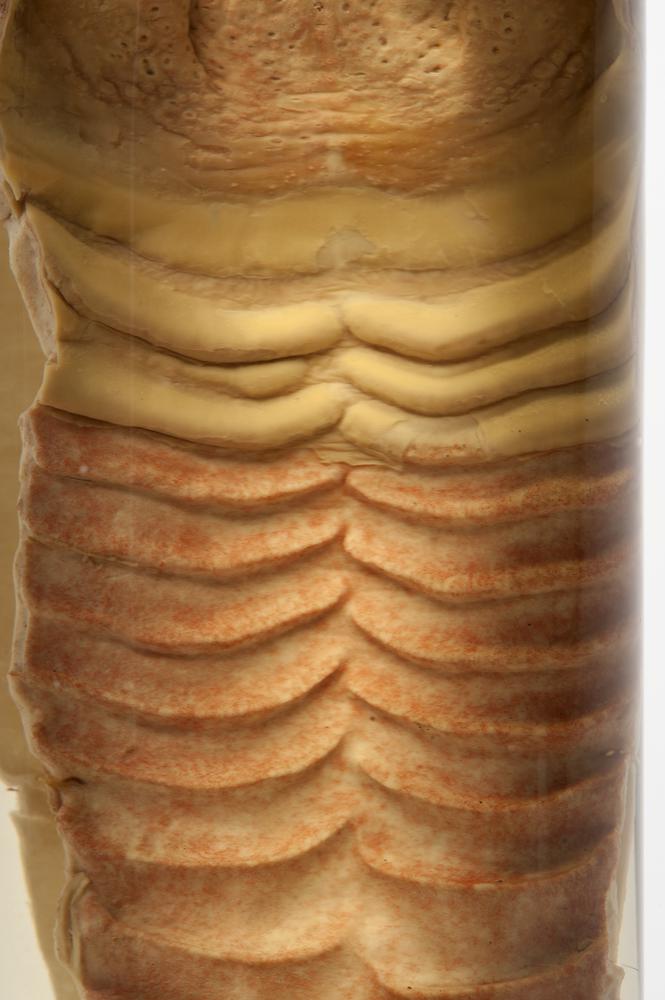 Wasmodel van de kop van een vislintworm