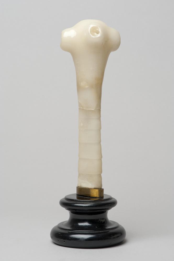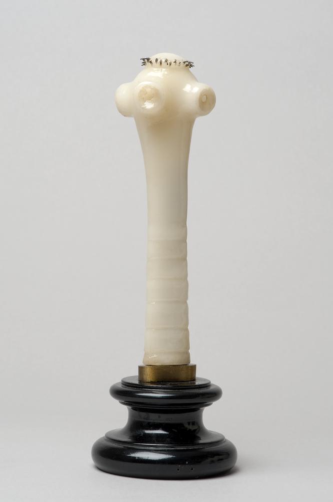 Wasmodel van de kop van een runderlintworm