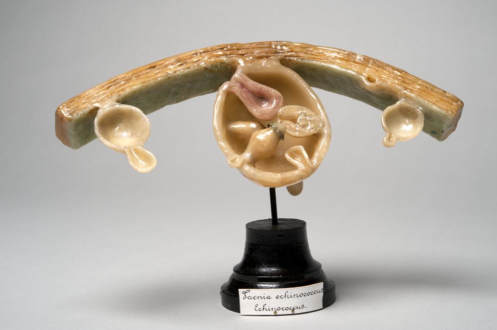 Wasmodel van een oncosphaer (embryo) van een lintworm