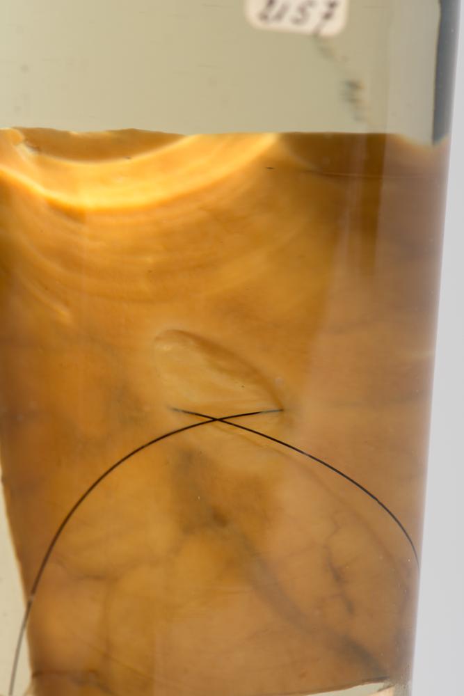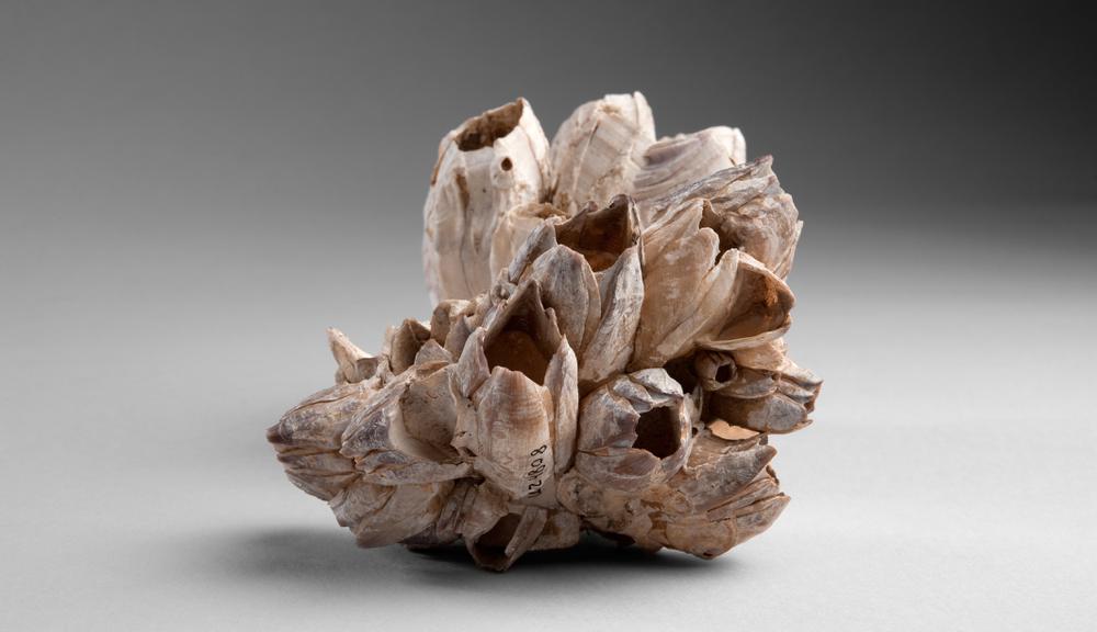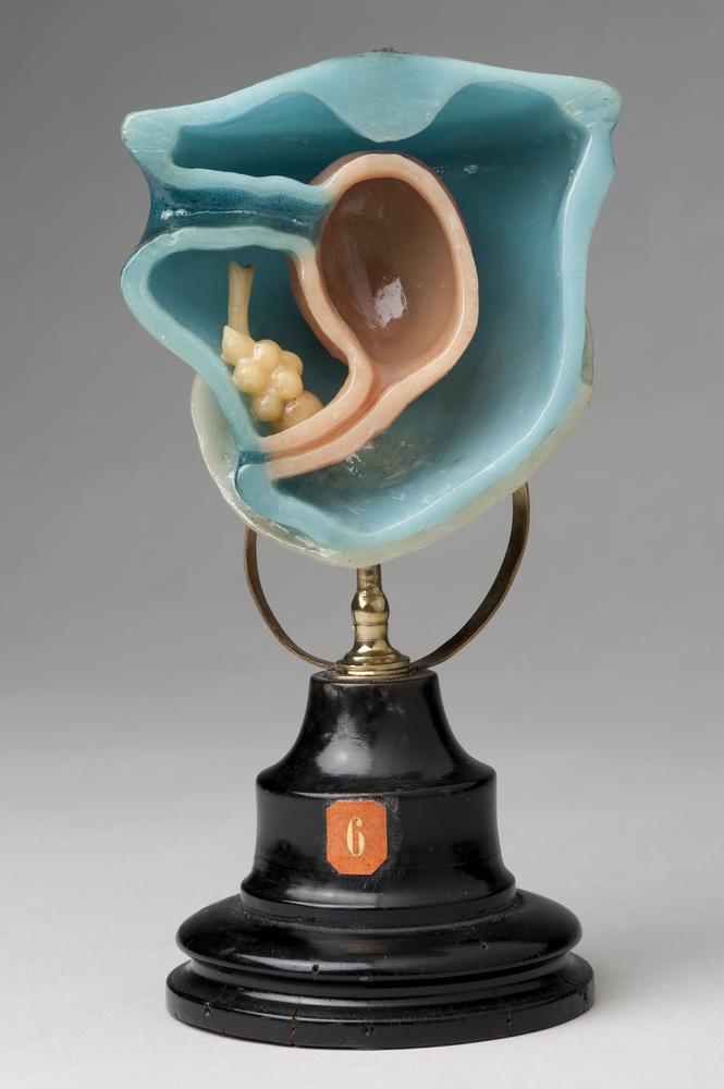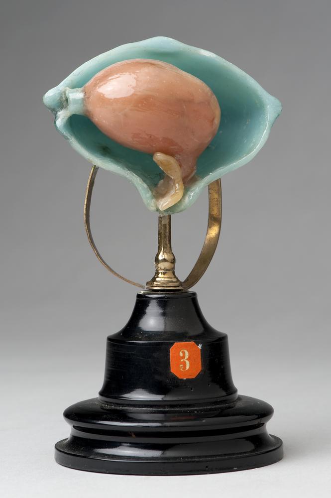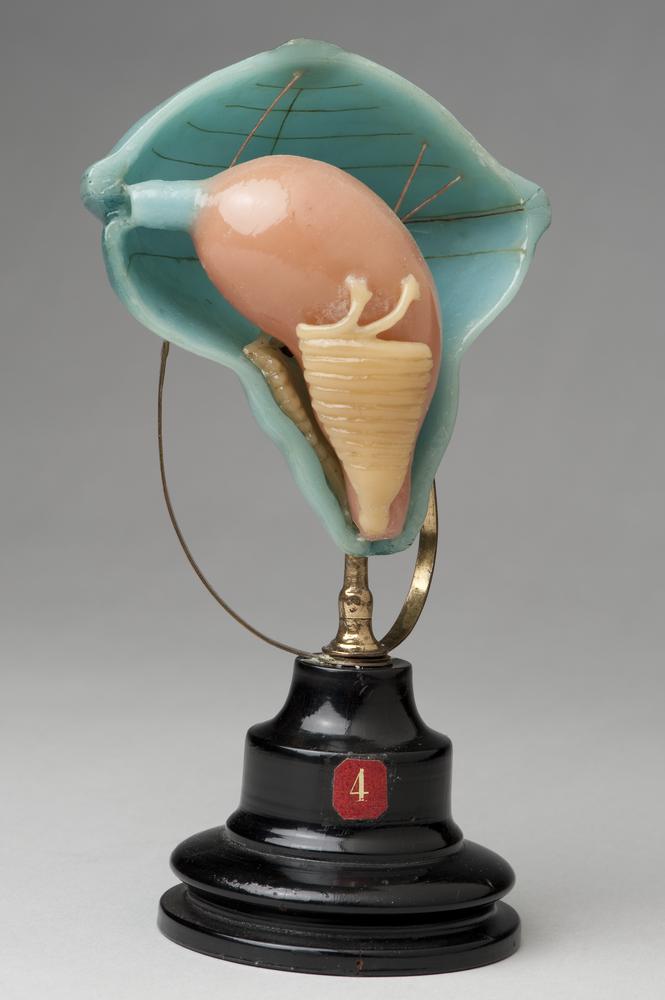 Wasmodel van een veligerlarve van Teredo, de paalworm