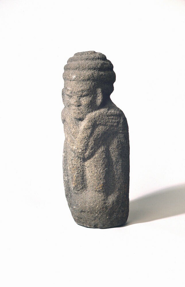 Een stenen beeld van zittende Brahma