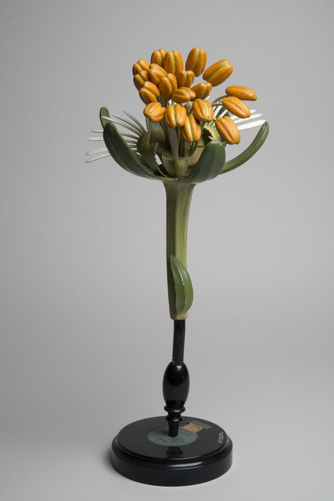 Model van een bloeiwijze met een bloemhoofd op een k...