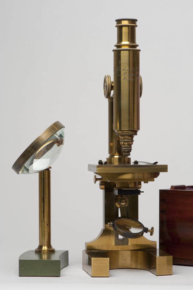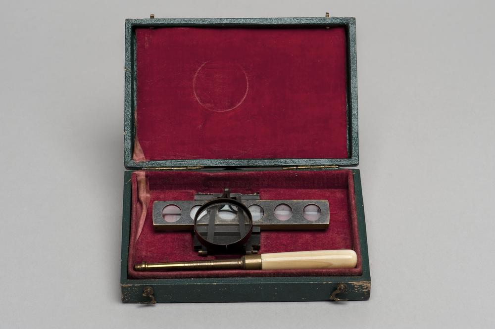 Samengesteld microscoop volgens Culpeper op ronde plaat