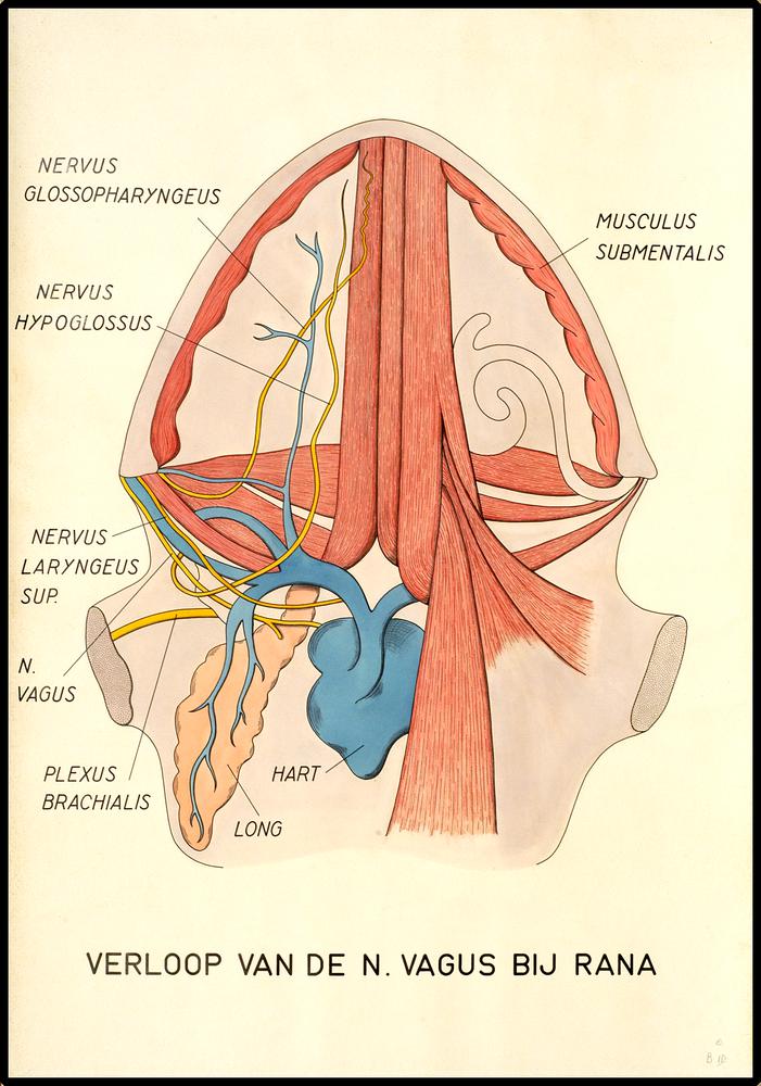 Verloop van de nervus vagus bij de kikker