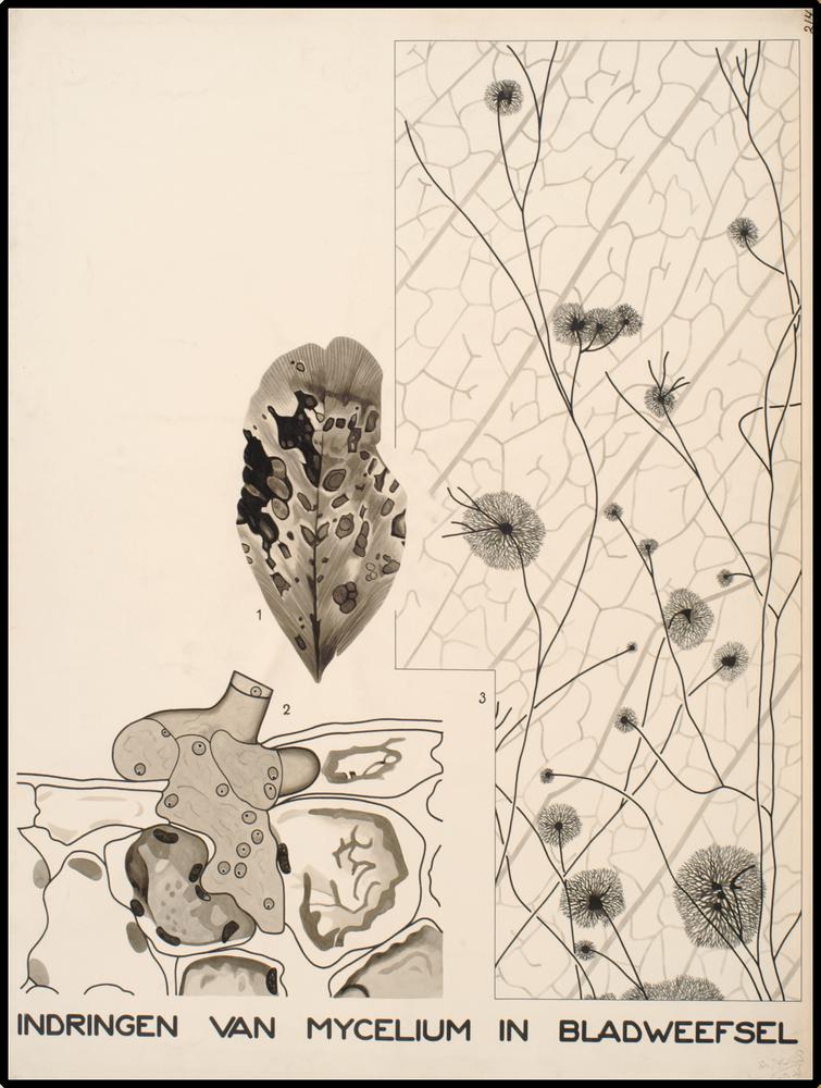 Indringen van mycelium in bladweefsel