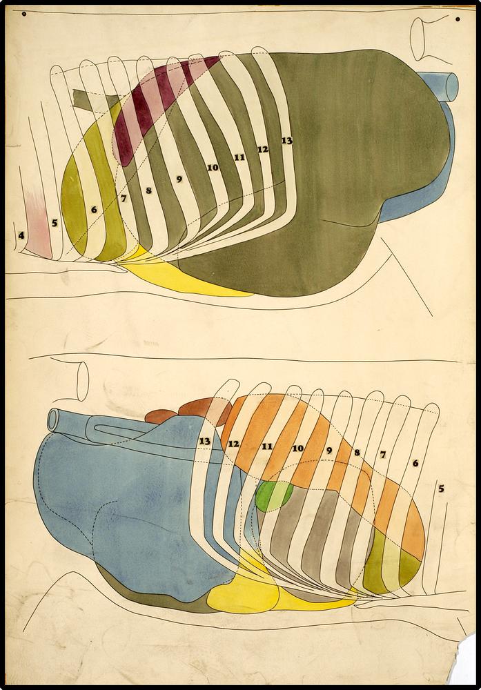 De ligging van de ingewanden van het rund