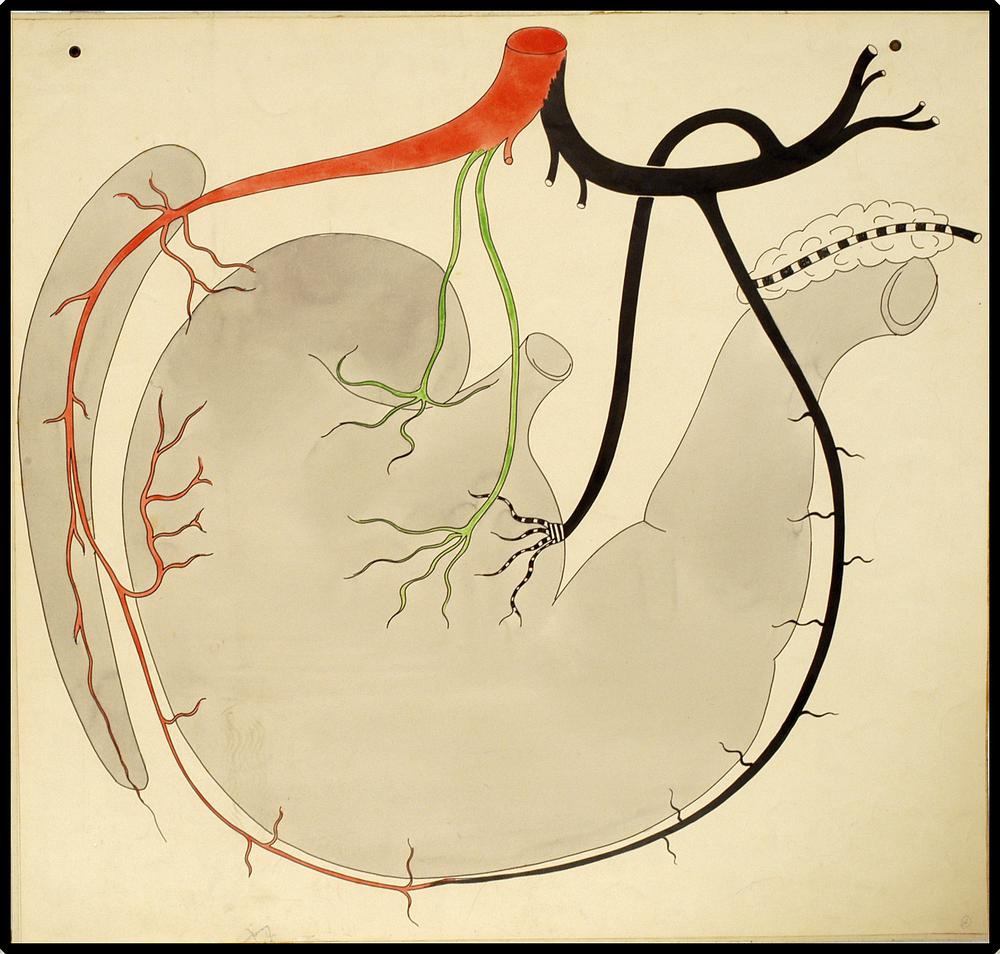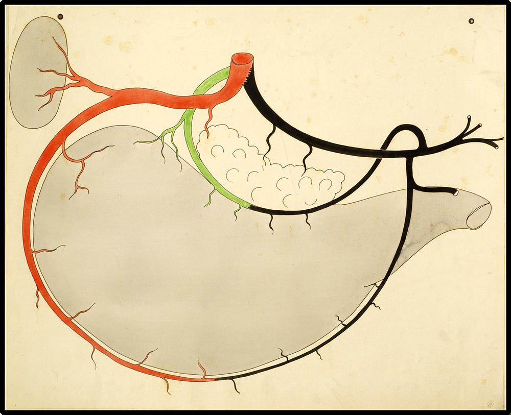 Maag, milt en pancreas van de hond