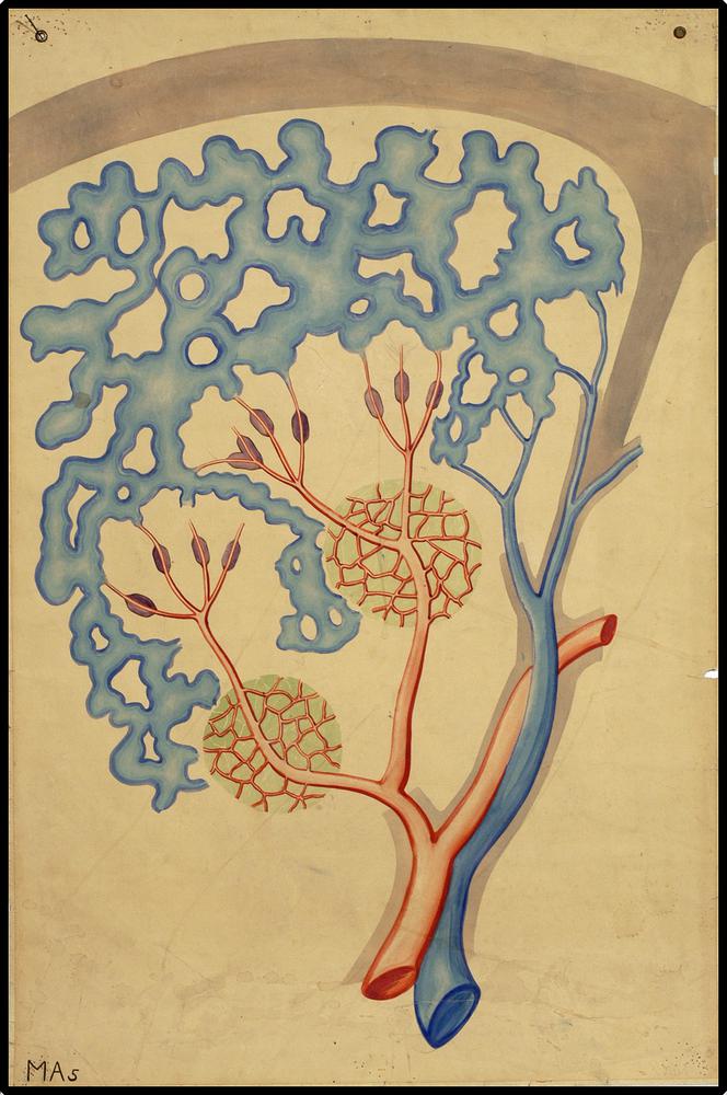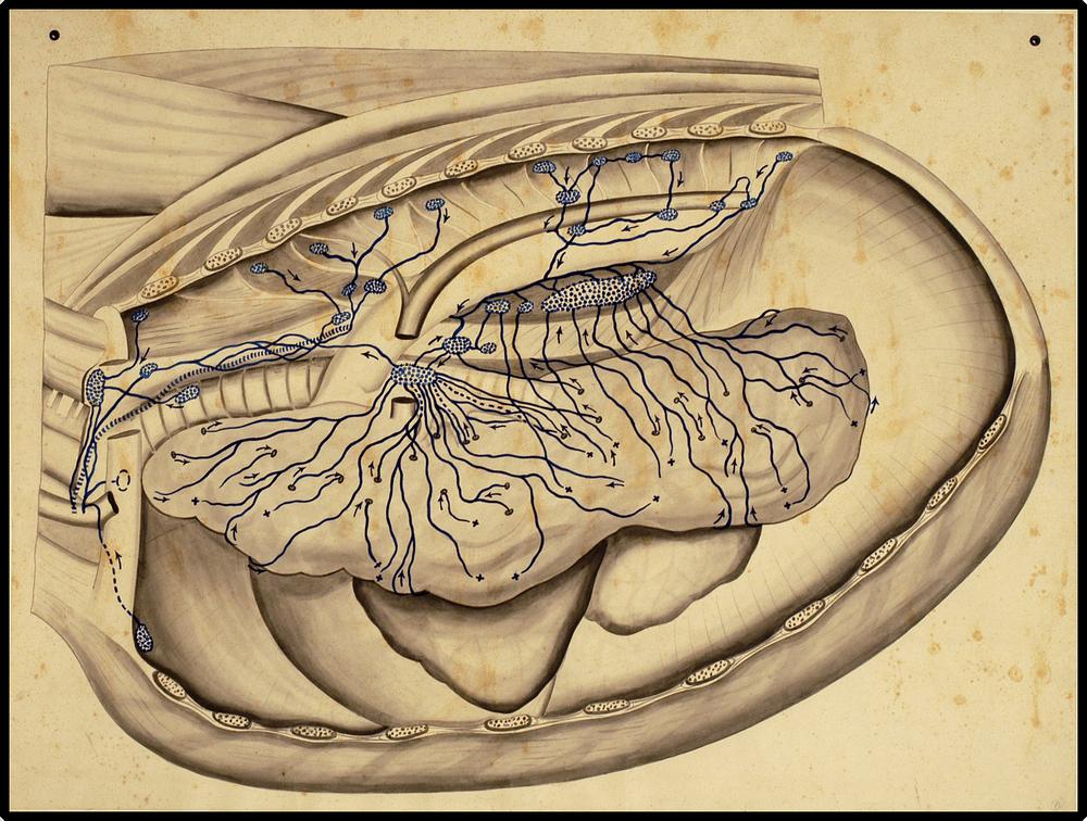 Doorsnede borstholte met lymfedrainage