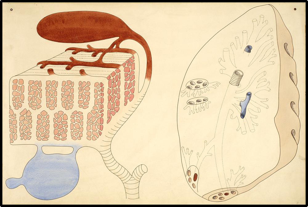 Onderwijsplaat met longdoorsneden