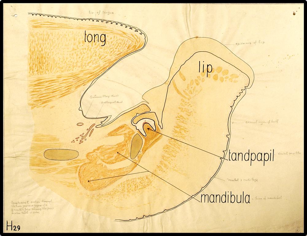 Doorsnede van de onderkaak van een menselijke foetus