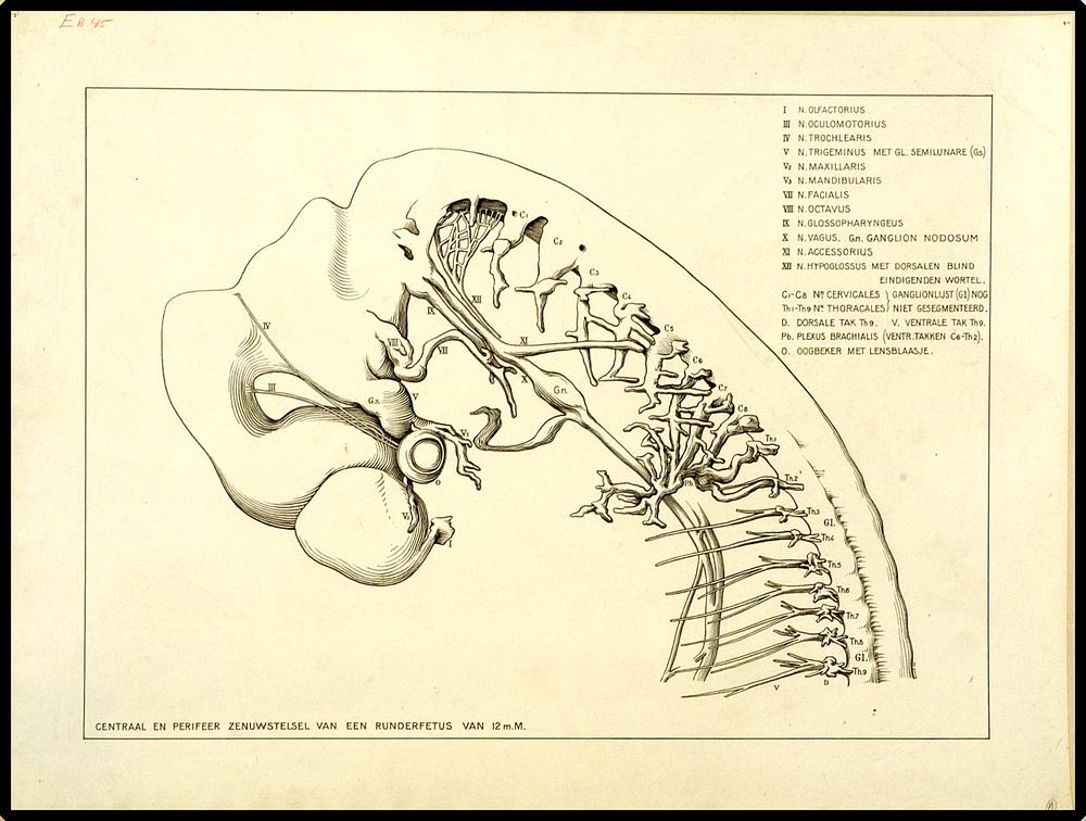 Centraal en perifeer zenuwstelsel van een runderfoetus