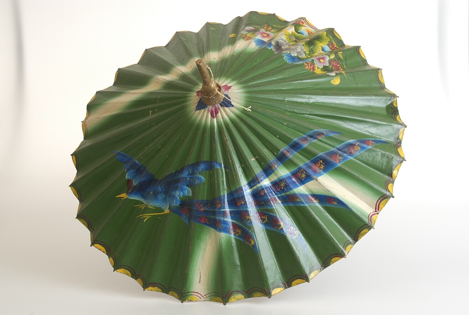 Beschilderde pajong van hout, katoen en papier