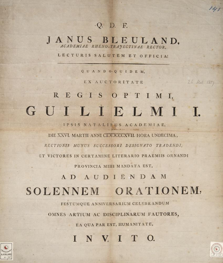 Aankondiging van rectoraatsoverdracht Jan Bleuland