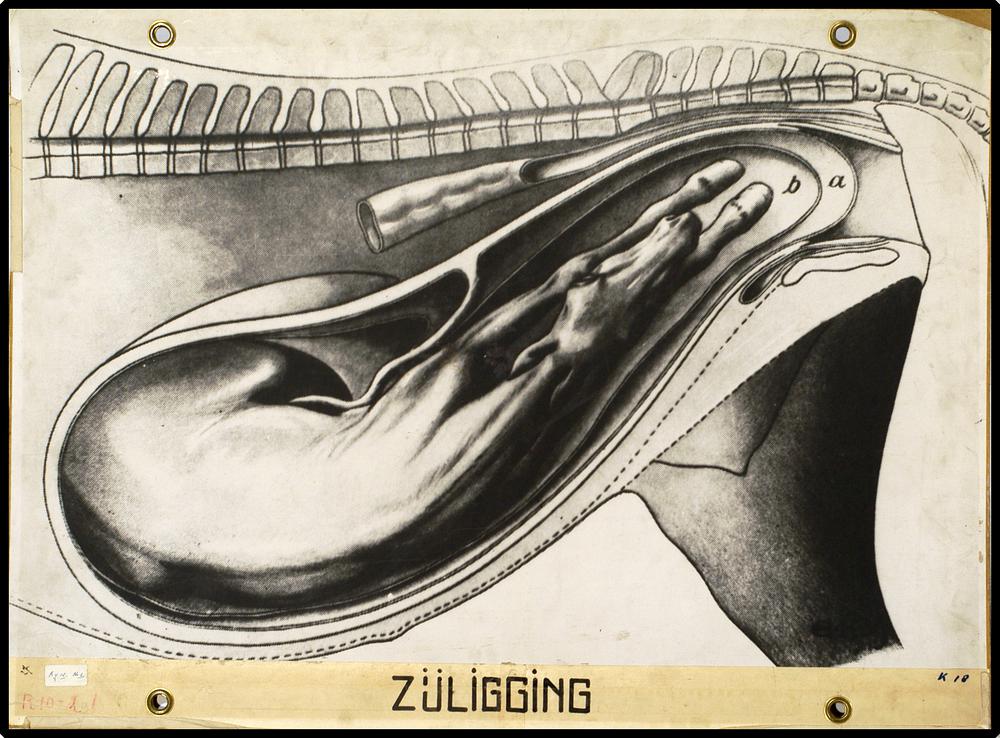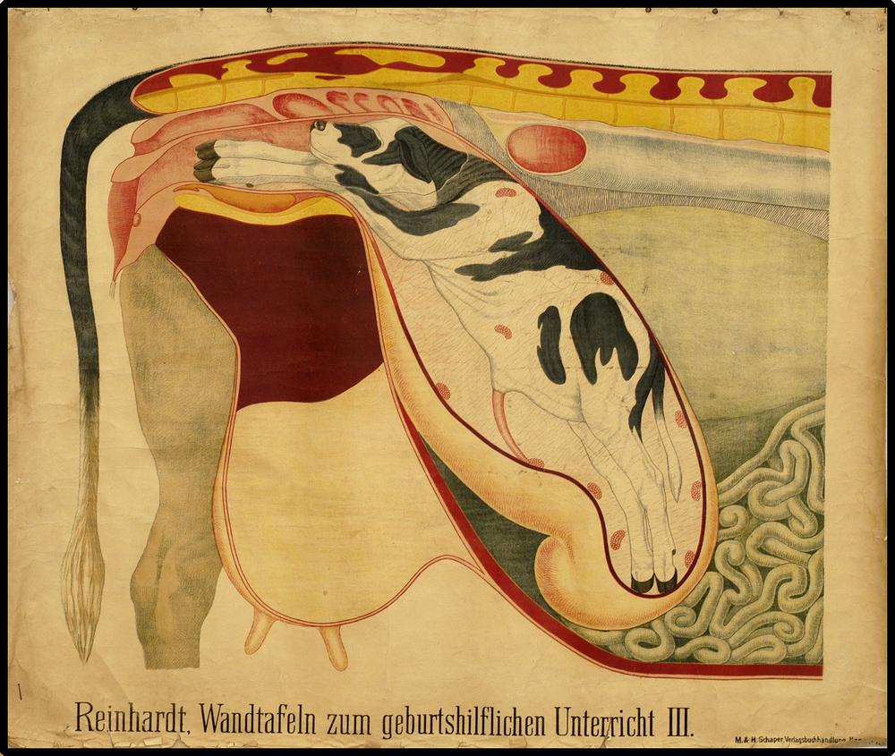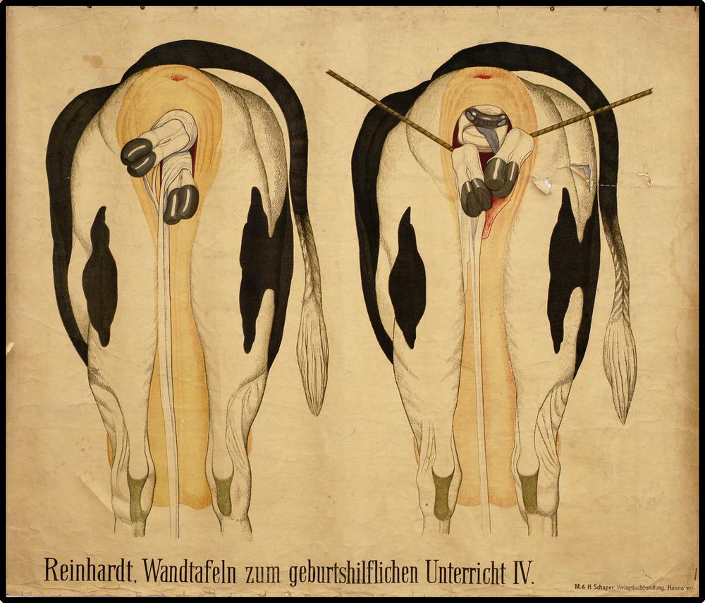 Onderwijsplaat m.b.t. de partus bij de koe