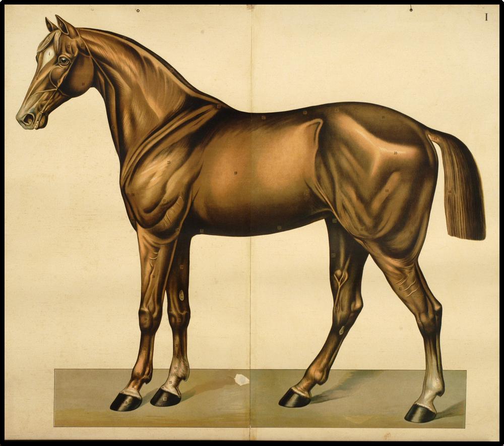 Onderwijsplaat van de globale anatomie van het paard