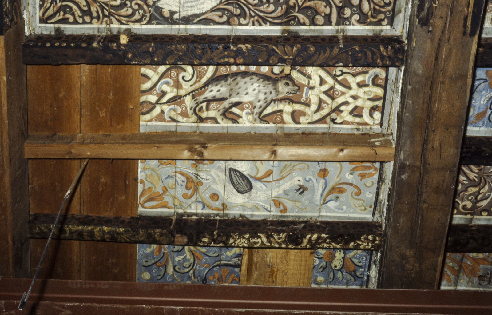 Interieur, plafond, beschilderde balk,detail