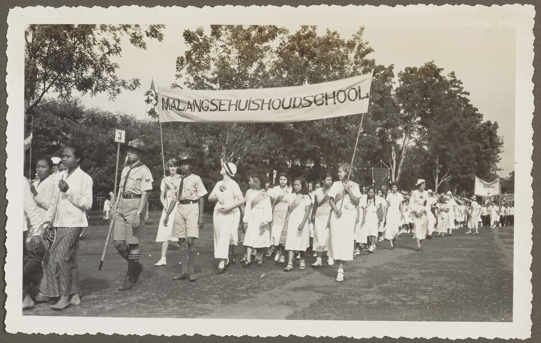 Schoolkinderen van de Malangse huishoudschool parade...