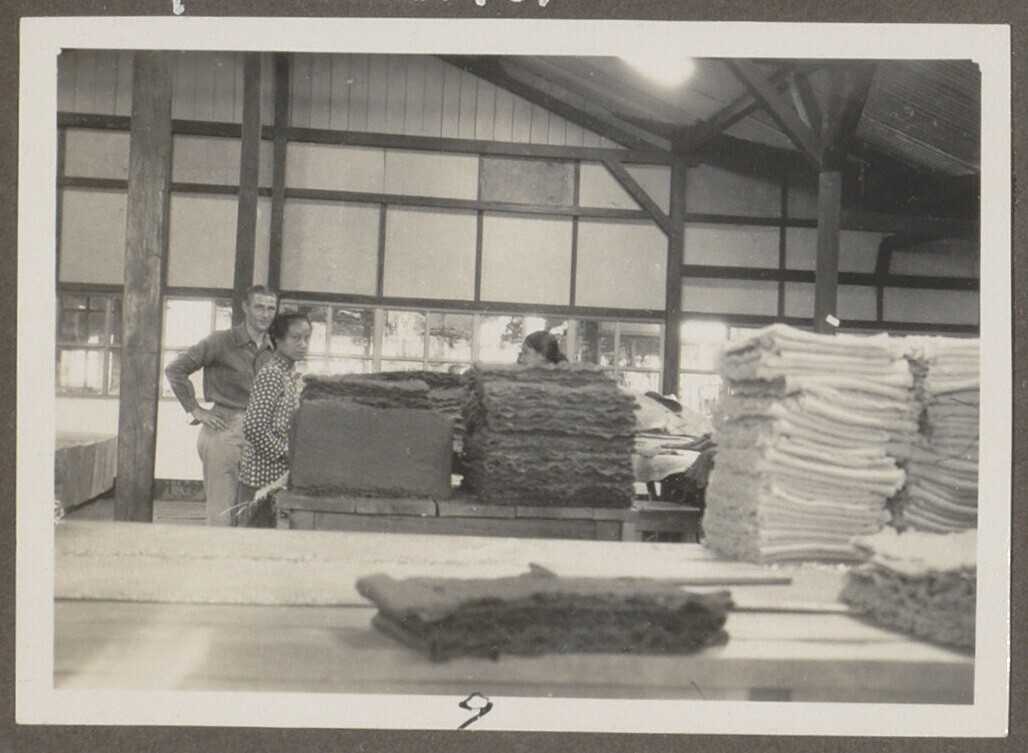 Javaanse vrouwen vouwen de rubbervellen