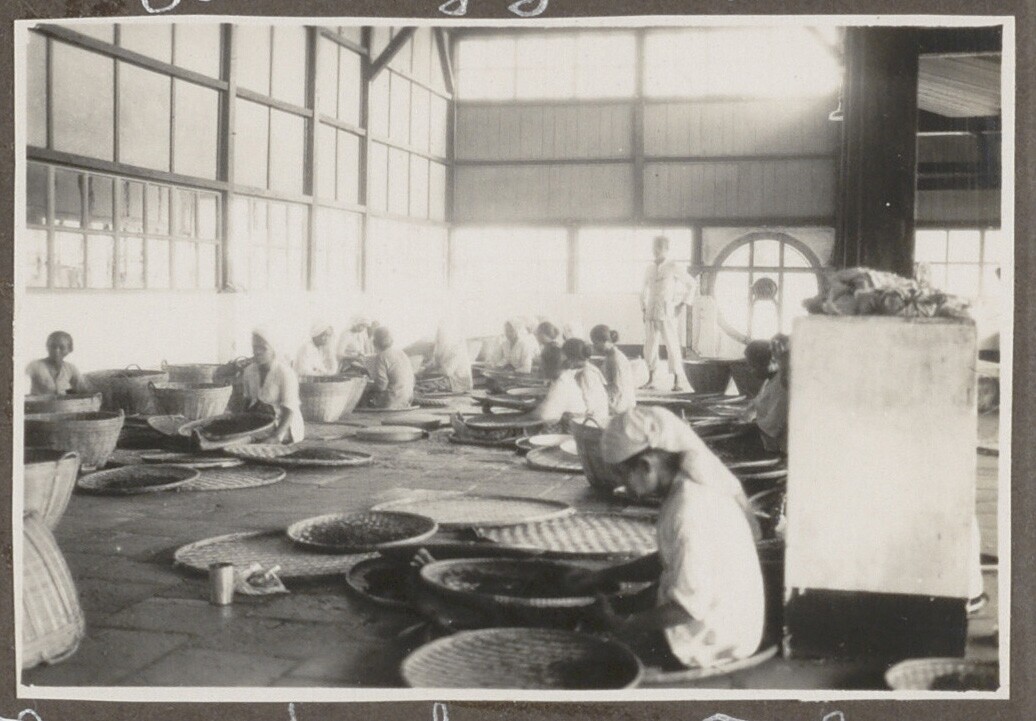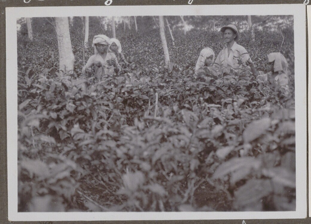 Arbeiders aan het werk op de theeplantage