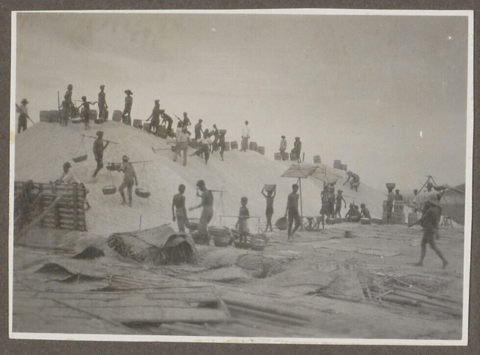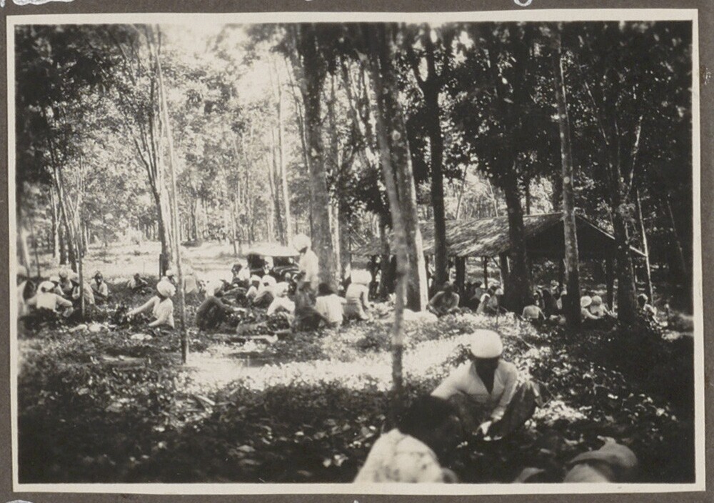 De rubbertappers worden uitbetaald