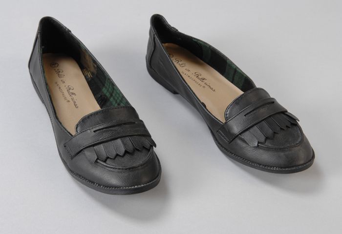 Zwarte damesschoenen, model penny shoes, platte hak