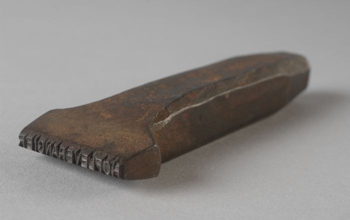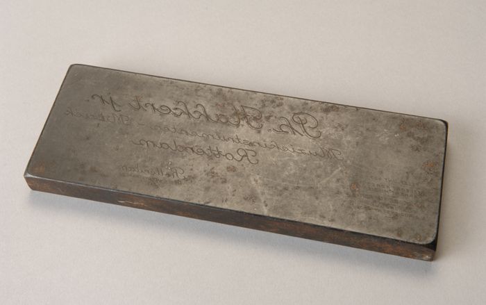 IJzeren stempel van muziekhandel Ph. Hakkert jr., vo...
