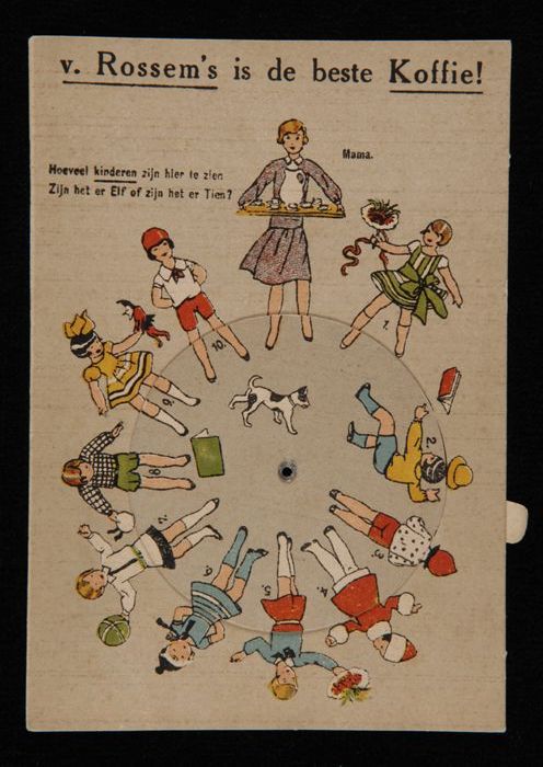 Kaart met opschrift "v. Rossem's is de beste Koffie!...