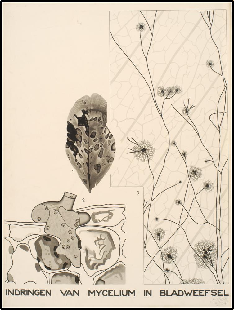 Indringen van Mycelium in bladweefsel