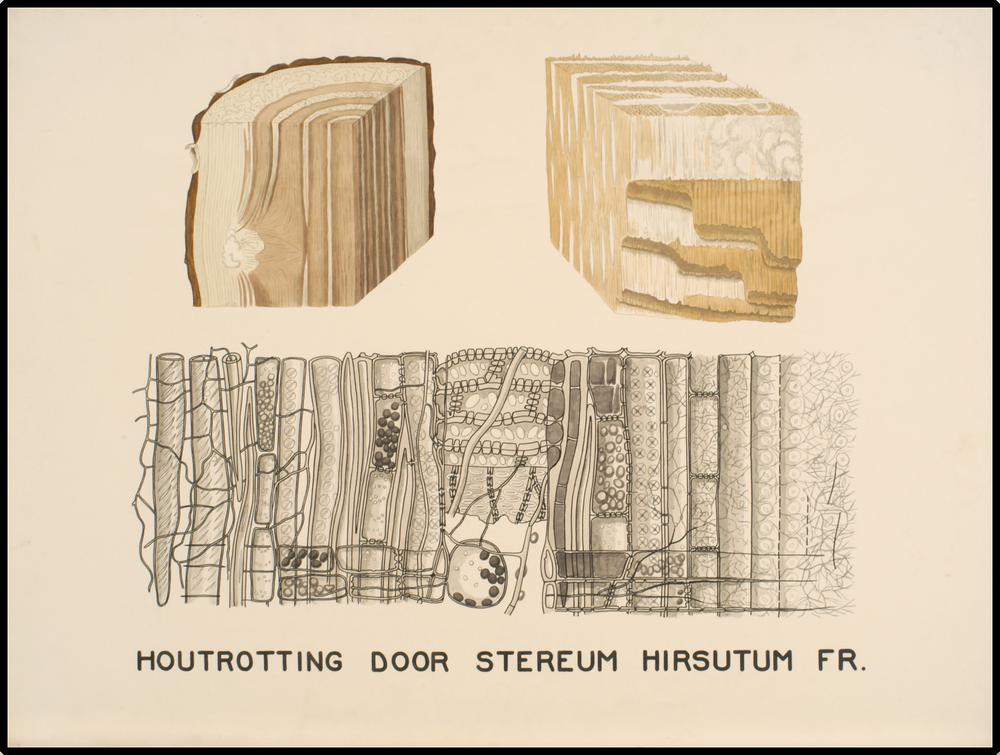 Houtrotting door Stereum hirsutum Fr.