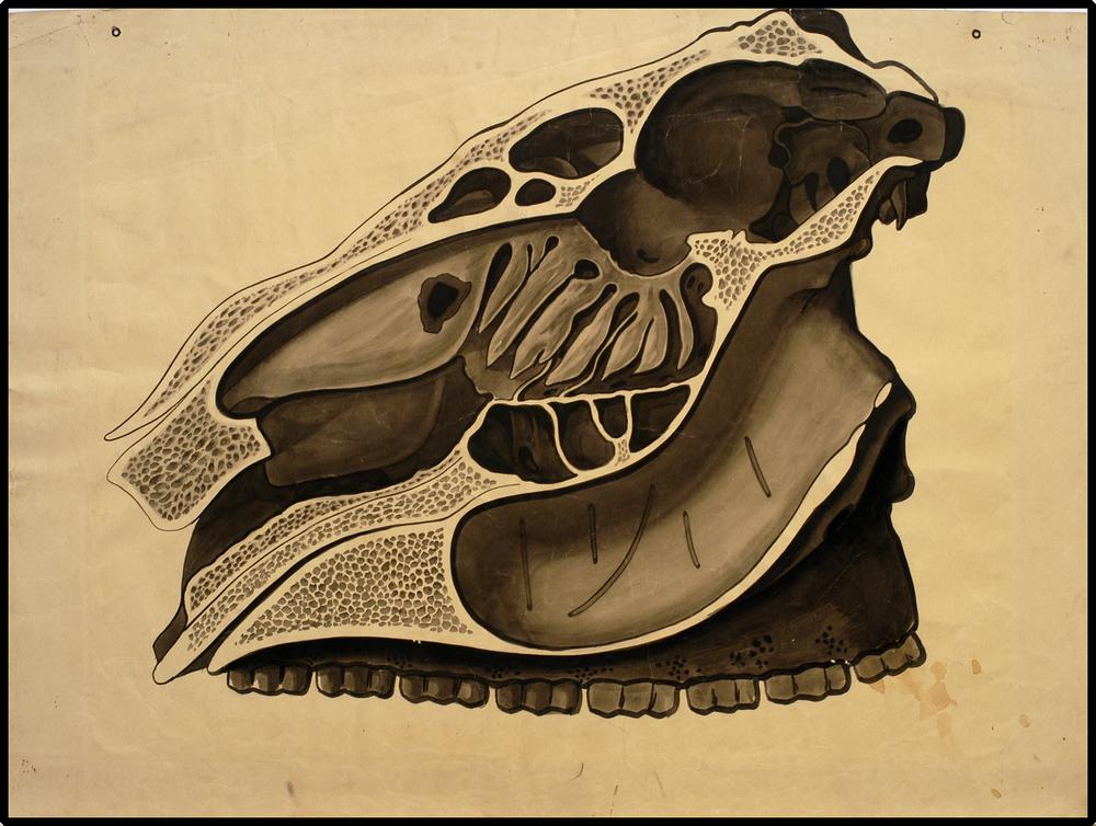 Overlangse doorsnede van een paardenschedel