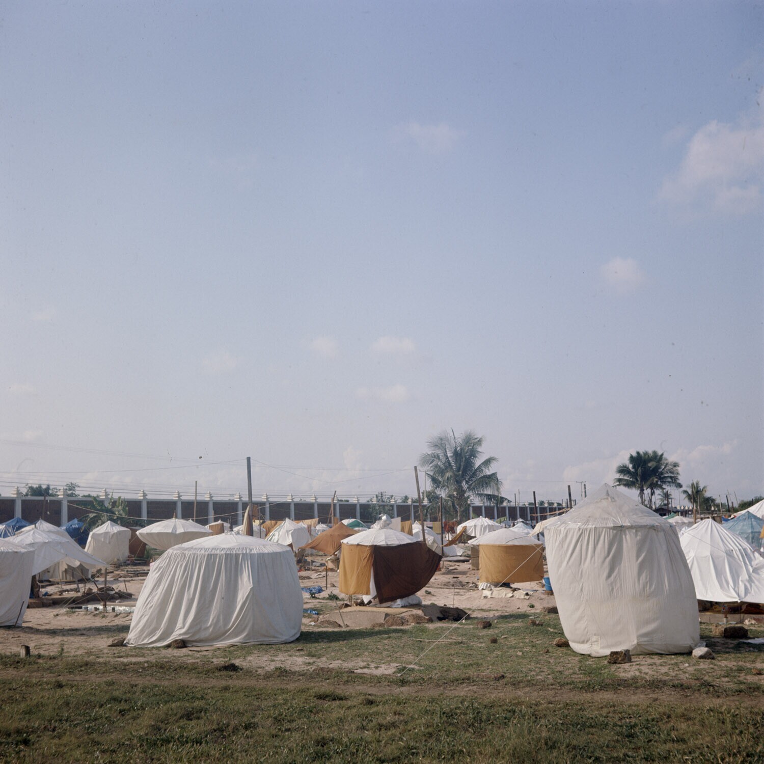 Het jongetje Iek met zijn broer en zus onder de deke...