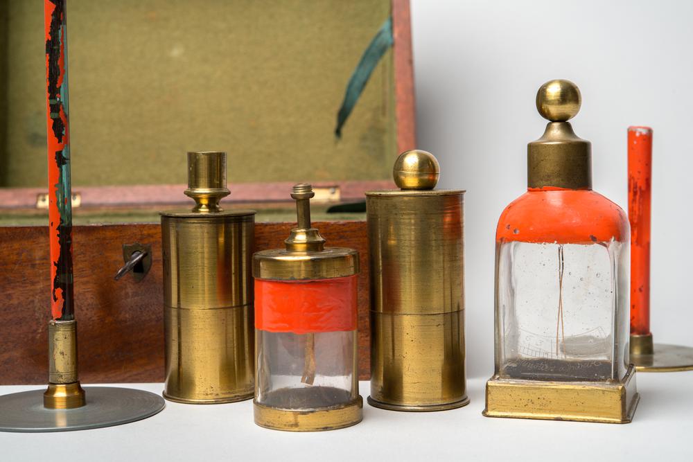 Scheepsmodel voor demonstratie van de bliksemafleider