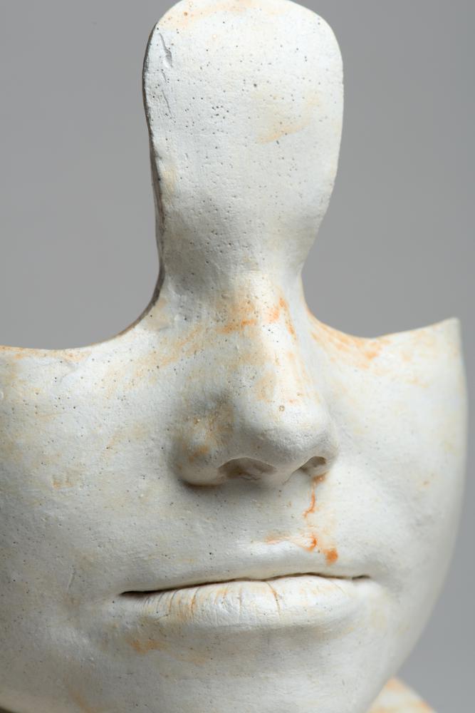 Gipsafgietsel van het gelaat van een man met een oog...