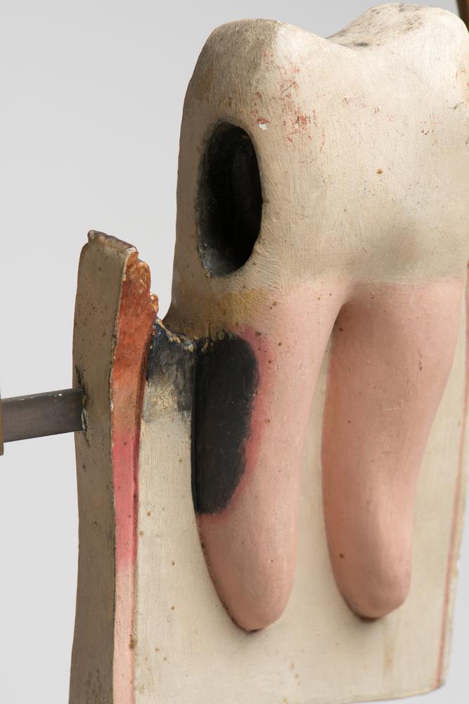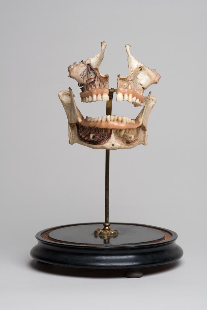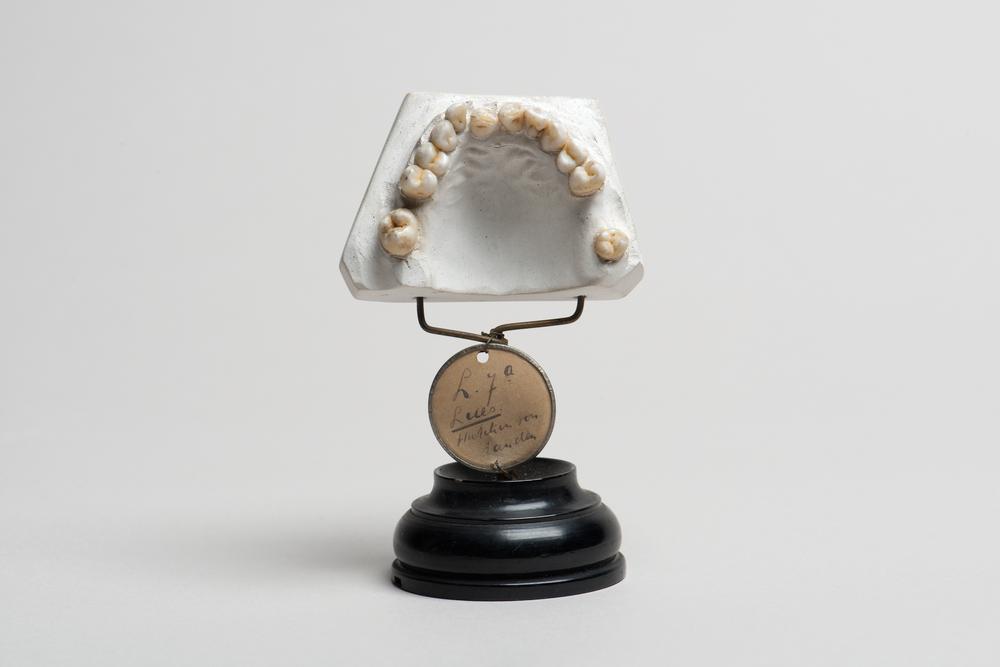 Gipsmodel van een onderkaak met getrokken tanden en ...