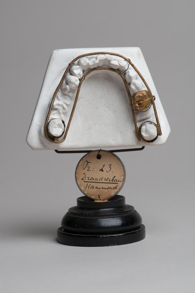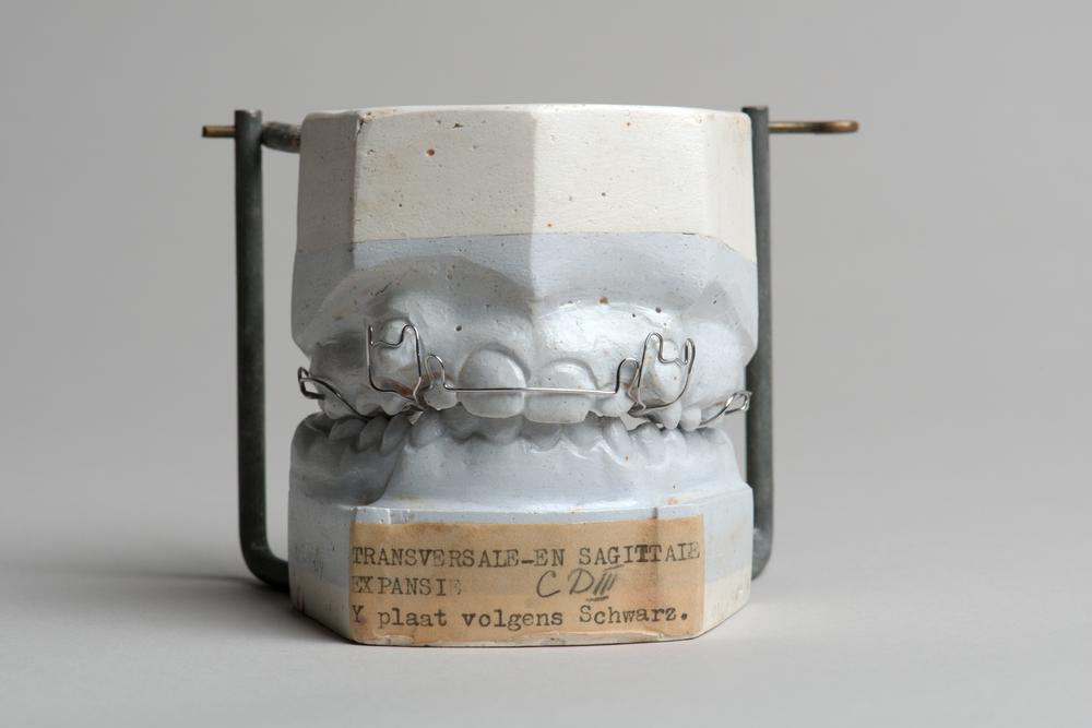 Gipsmodel van een onderkaak met getrokken elementen ...