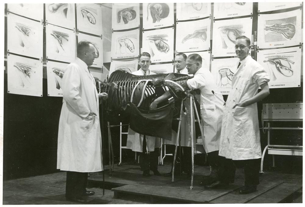 Groepsportret van studenten diergeneeskunde in de an...