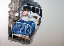 Kindersprei of deken van sits, gewatteerd en doorsti...
