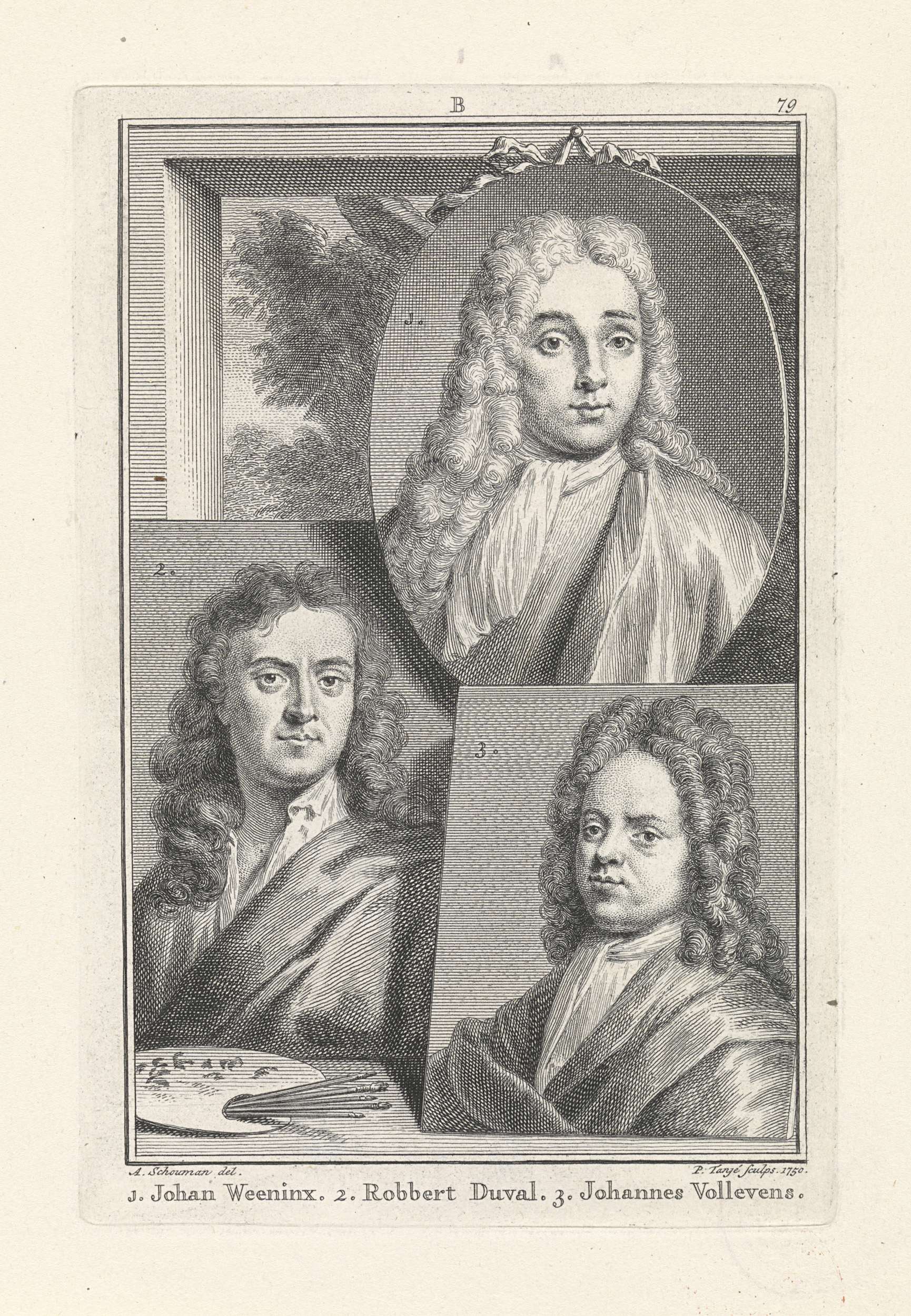 Portretten van Jan Weenix, Robbert Duval en Johannes...