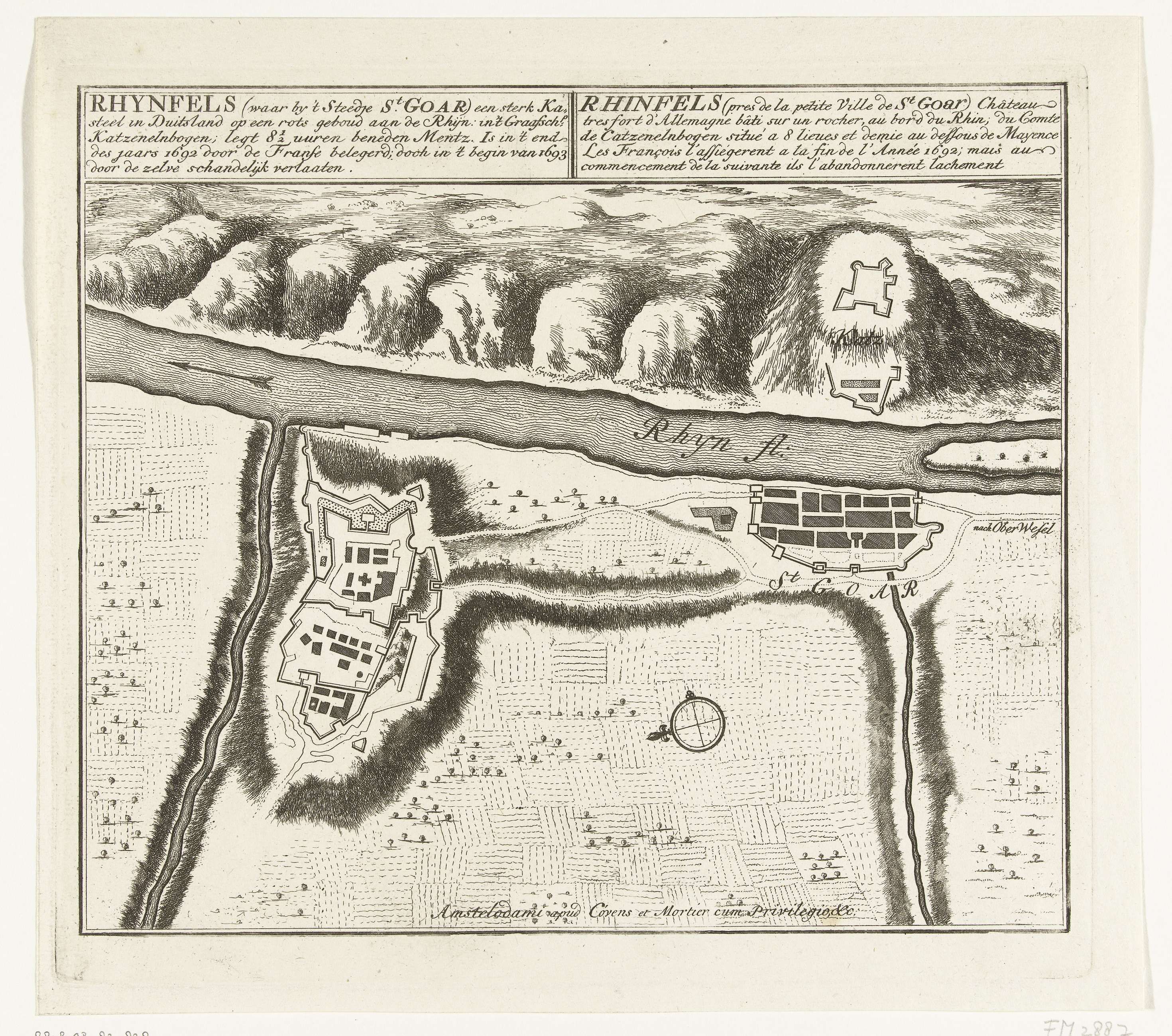 Plattegrond van het kasteel Rheinfels, belegerd door...