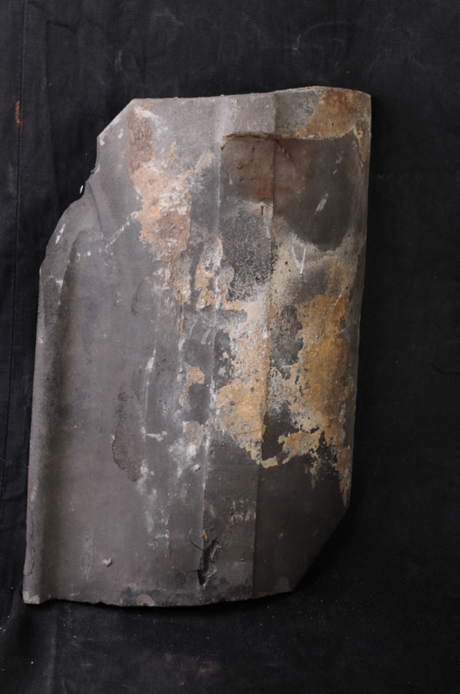 Dakpan van keramiek afkomstig van de schuur aan de W...