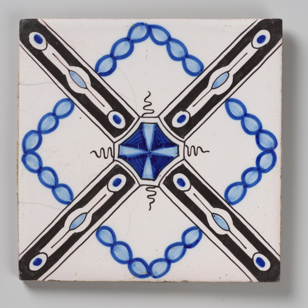 tegel van aardewerk met tinglazuur, voorstellende: o...