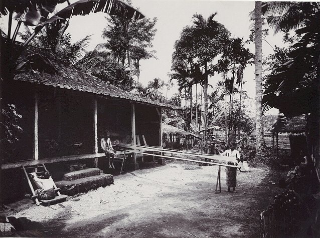 Het weven van zijden kains, Java, Indonesië (1919-1930)