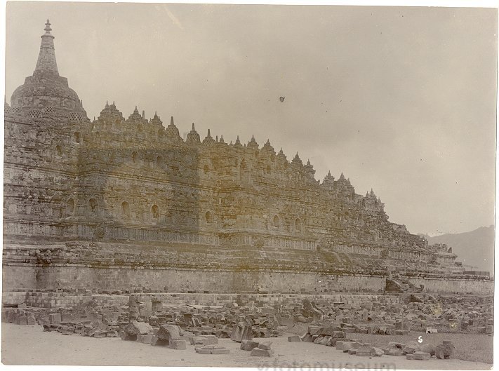 De Borobudur tijdens de ontgraving van de bedolven v...