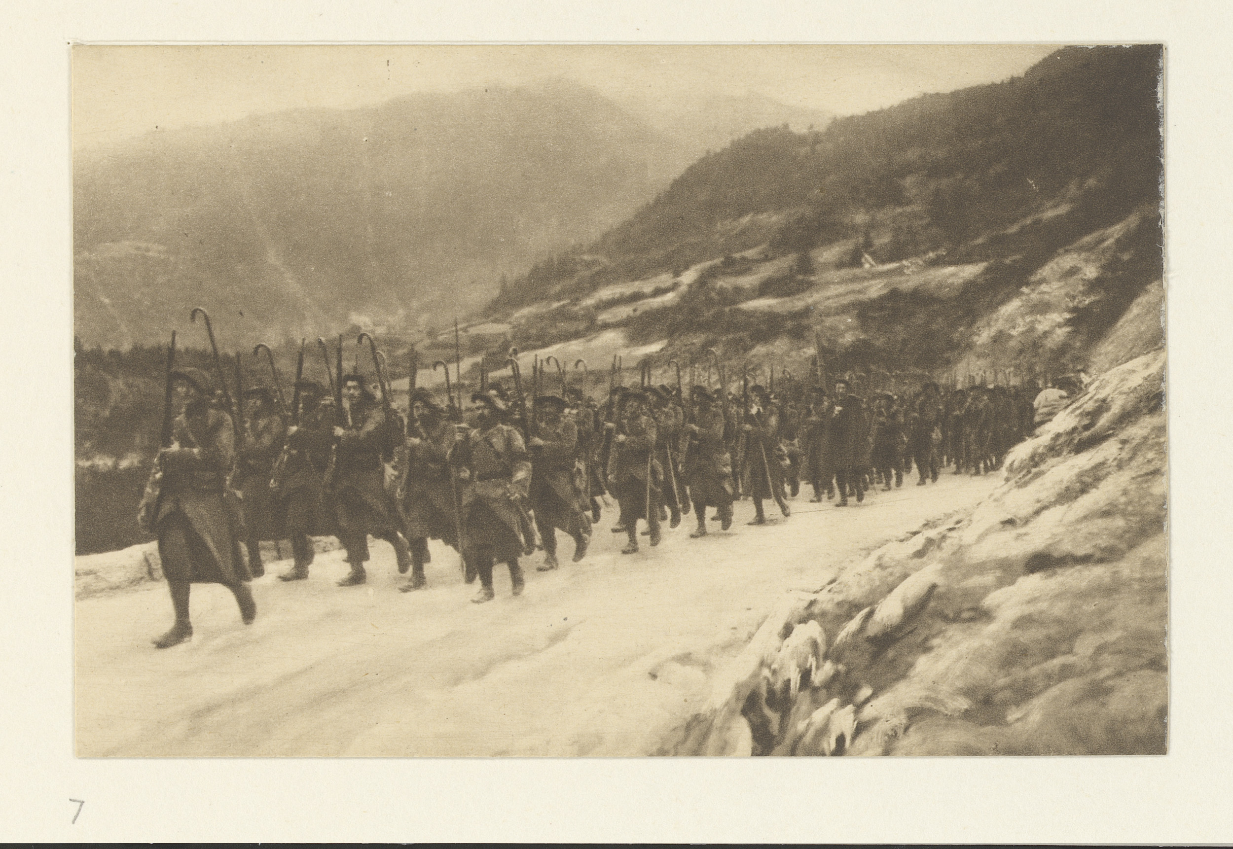 Een colonne Alpijnse Jagers, door de Duitschers de "...