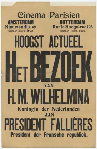 Bezoek van H.M. Wilhelmina aan president Fallières, Het